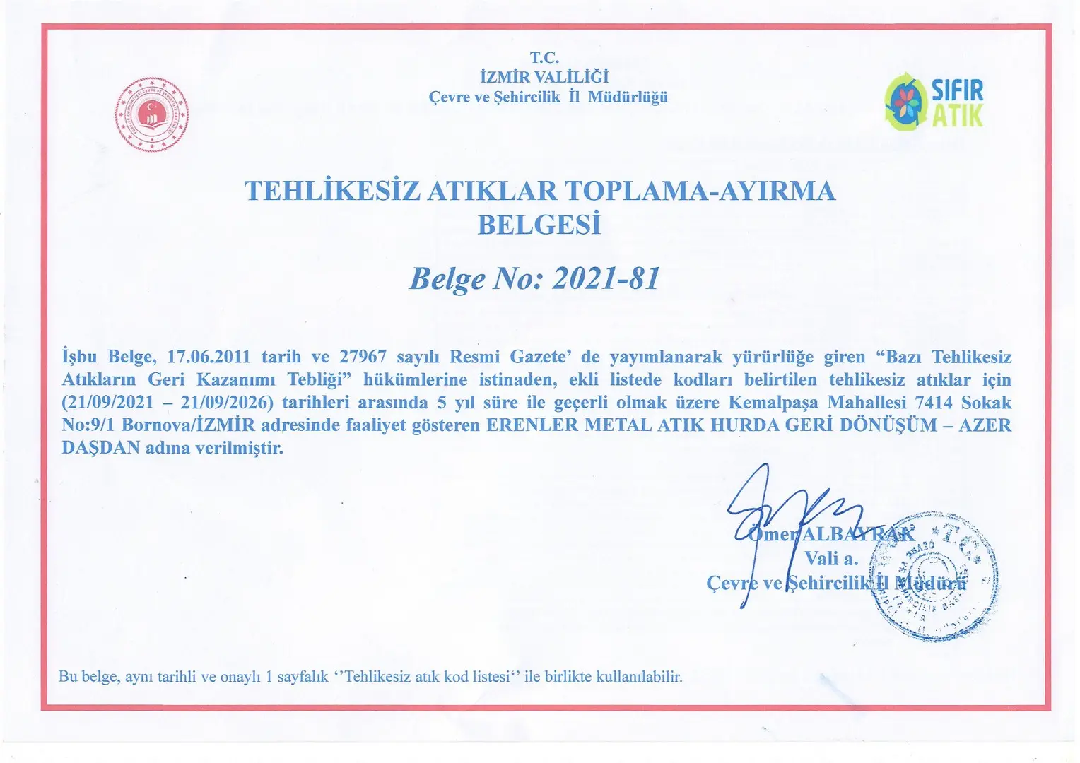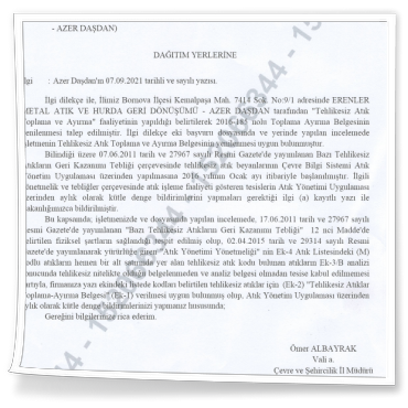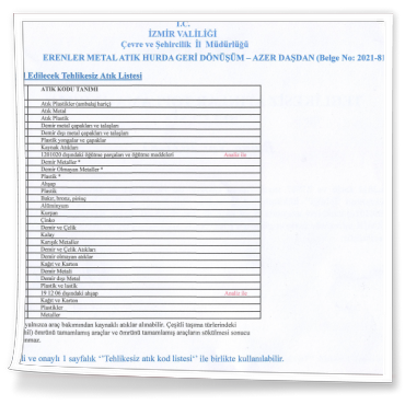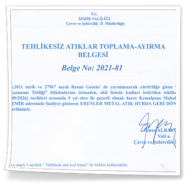 BELGELERİMİZ - Erenler Metal Geri Dönüşüm